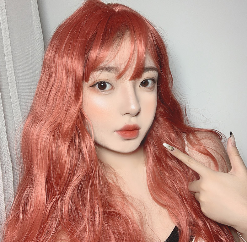 Harajuku Pastel Orange Red Gradient Long Wavy Hair Wig with Air Bangs