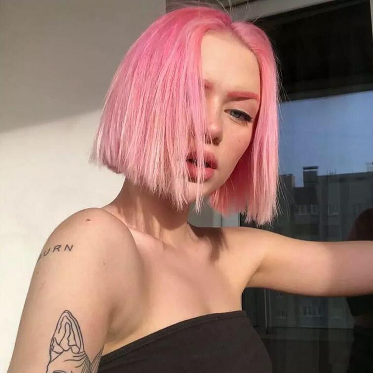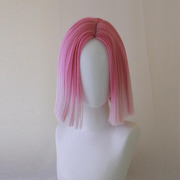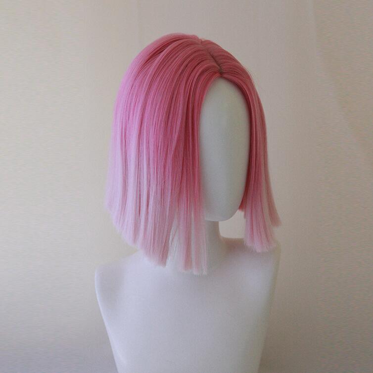 Pink Ombre Center Parting Short Straight Cosplay Wig