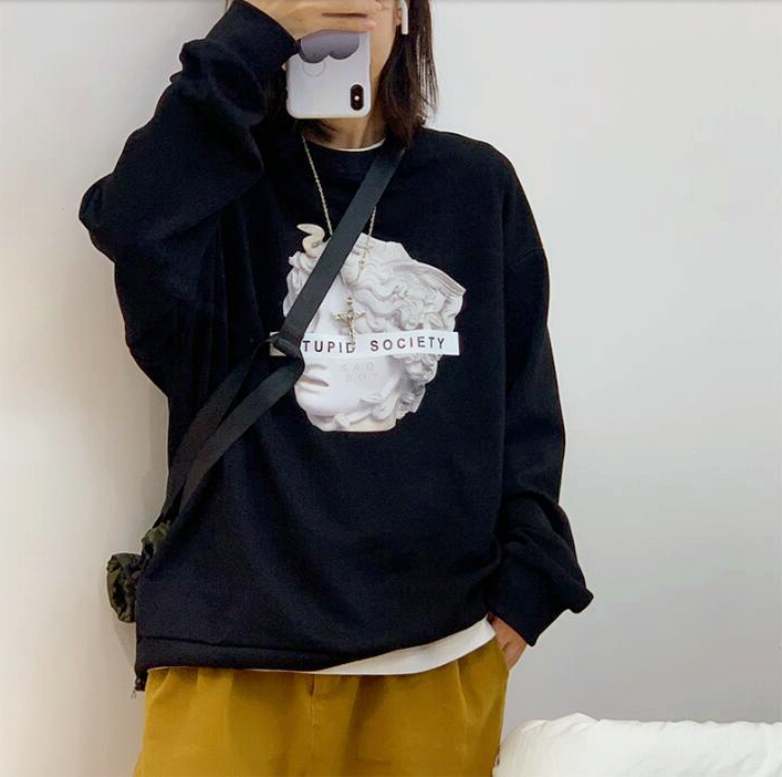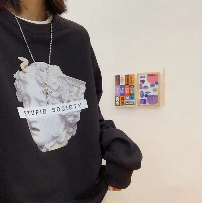 STUPID SOCIETY Statue of David Printed Sweatshirt