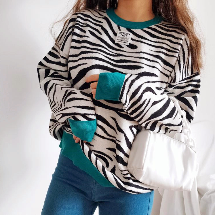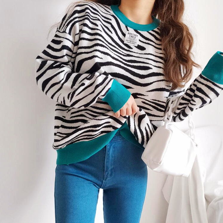 ♡Color: black&white; ♡Style: sweater; ♡Size: Length: 62cm / 24.4in; Bust: 112cm / 44.1in; Shoulder: 57cm / 22.4in; Sleeve: 49cm / 19.3in;