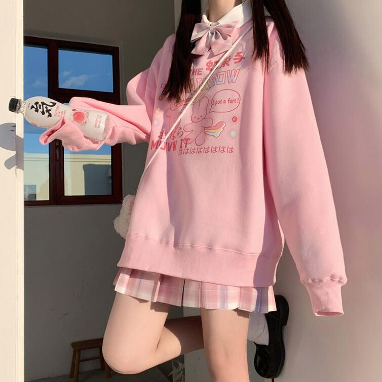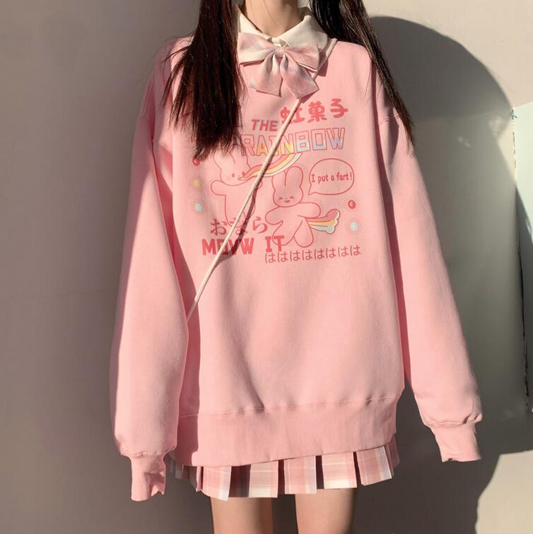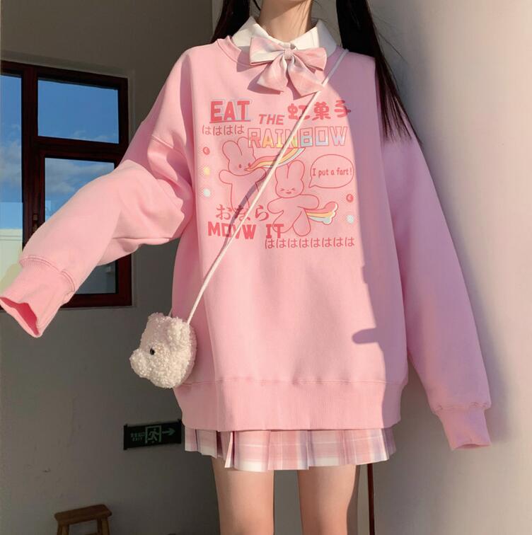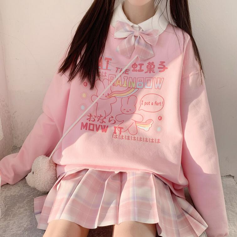 The Rainbow Bunny Rabbit Pastel Pink Sweatshirt
