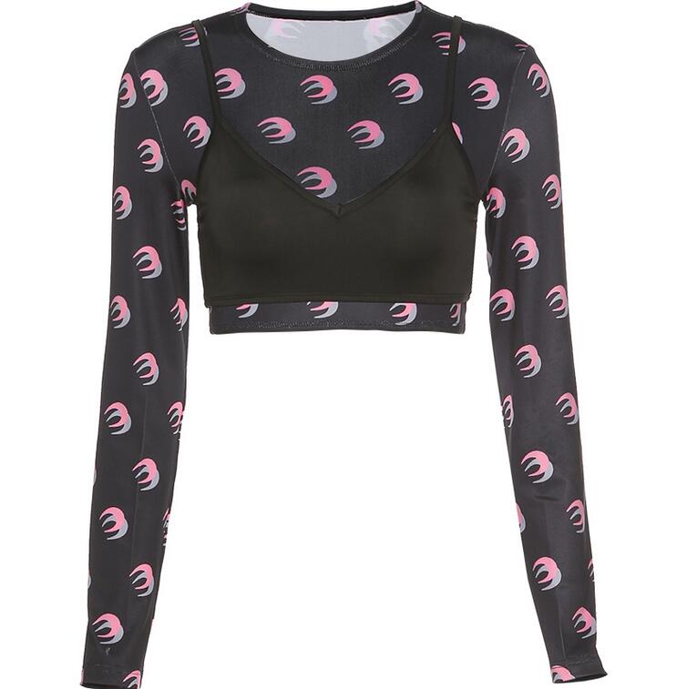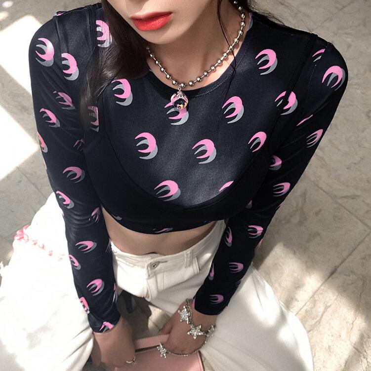 Crescent Moon Printed High Waist Camisole Long Sleeve Top