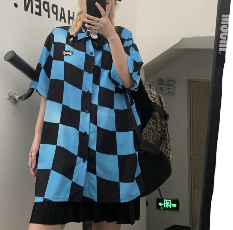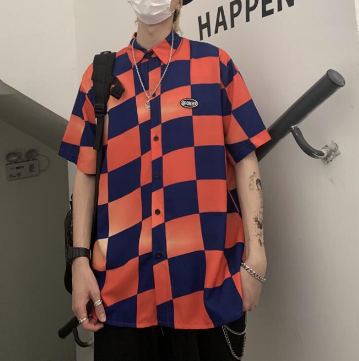 Checkerboard Color Block Short Sleeve Shirt