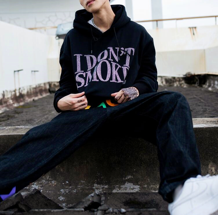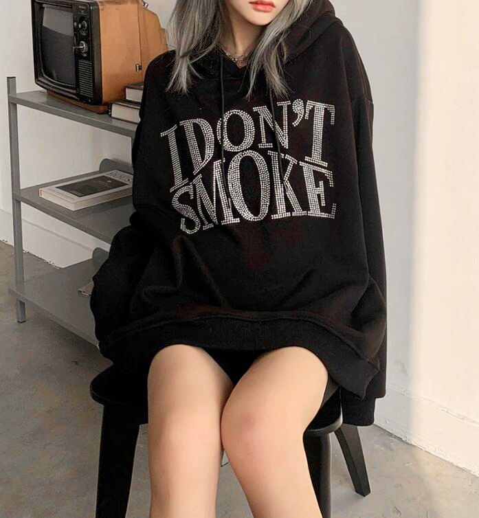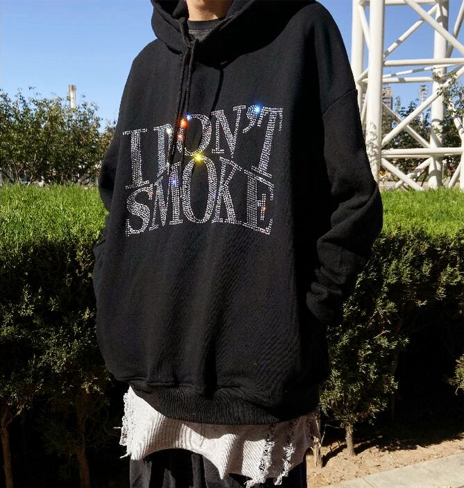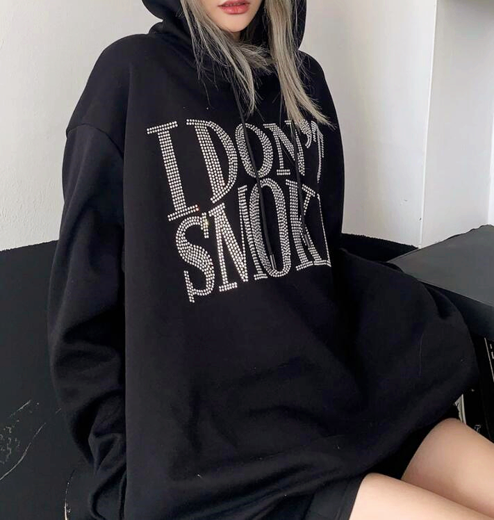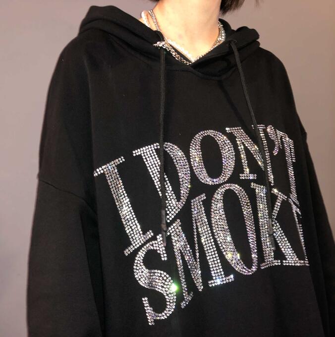 I DON'T SMOKE Rhinestone Glitter Crystal Hoodie Sweatshirt