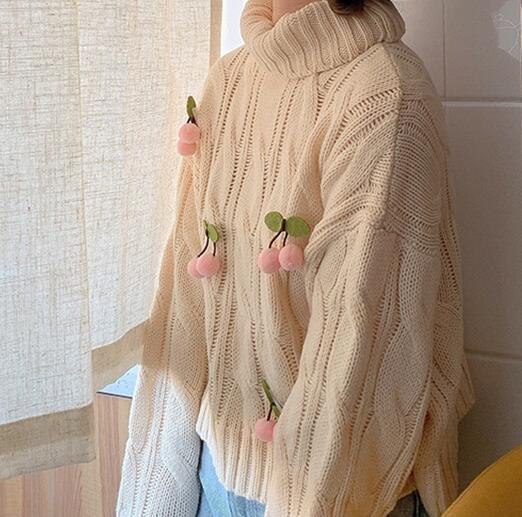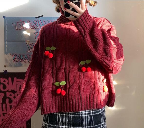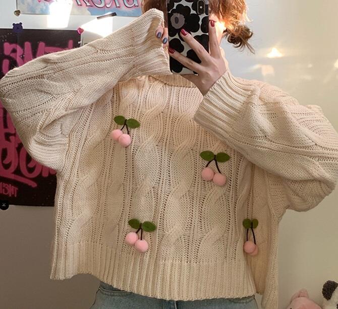 ♡Color: apricot, red; ♡Style: cherry; ♡Size: Length: 50cm / 19.7in; Bust: 122cm / 48in; Shoulder: 58cm / 22.8in; Sleeve: 45cm / 17.7in;