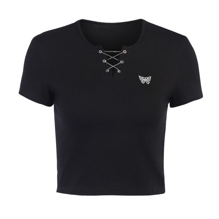 Reflective Butterfly Cross Black Top