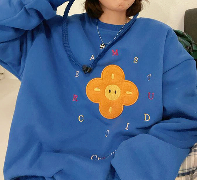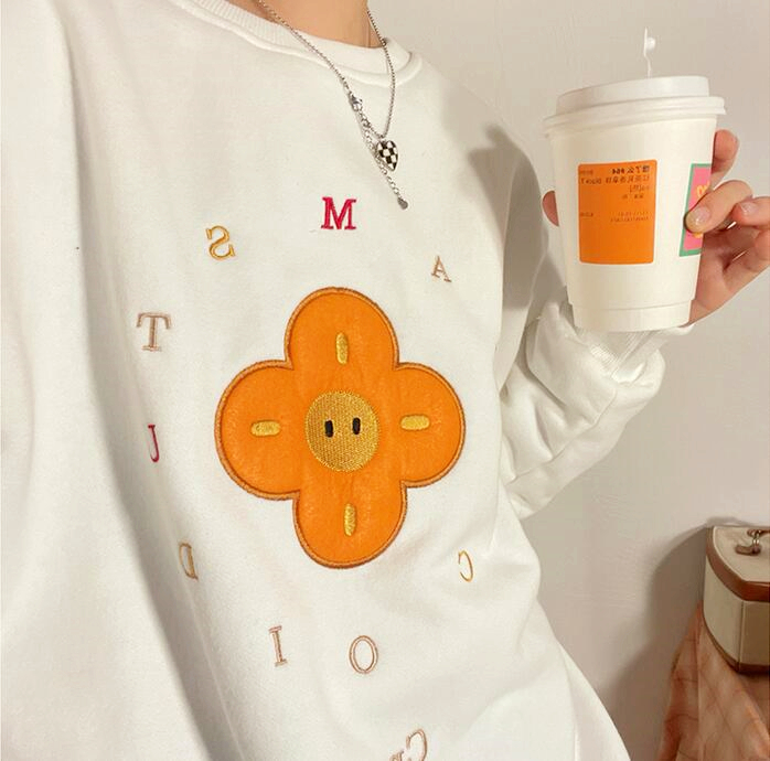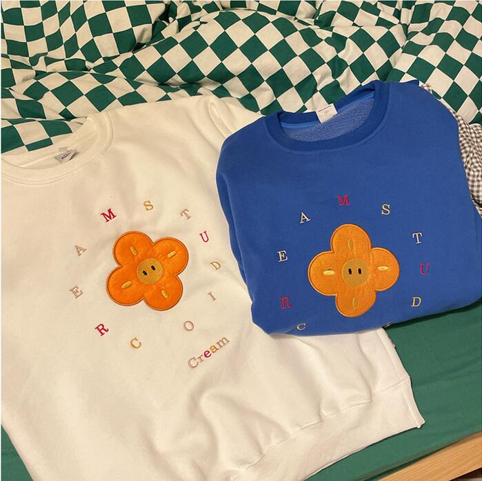 Sunflower Heronsbill Embroidery Fleece Sweatshirt