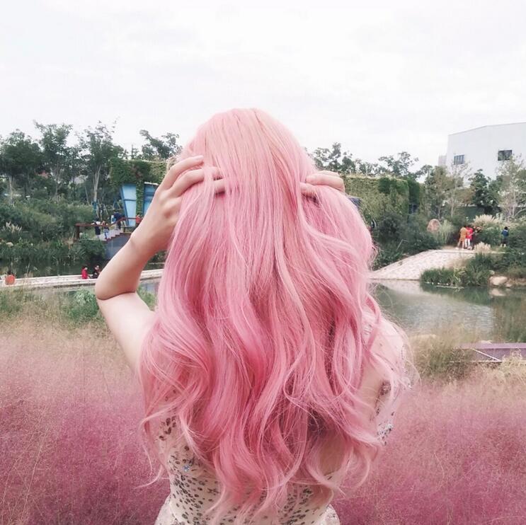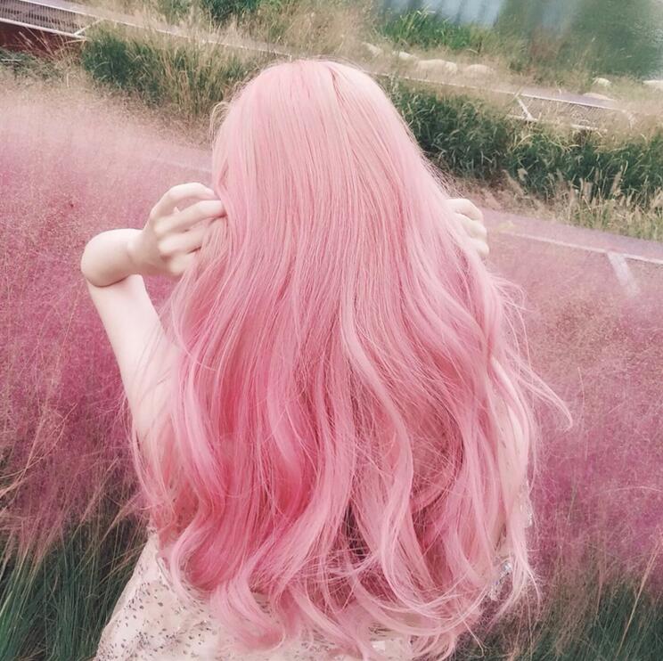 Material:100% High Temperature Fiber. Color: pink; Modeling: wave; Package include: 1 x wig (wig cap freely).
