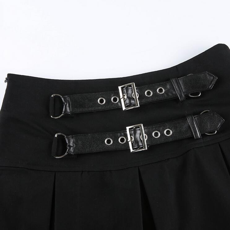 Cyberpunk High Waist Double Buckle Patchwork Black Pleated Skirt