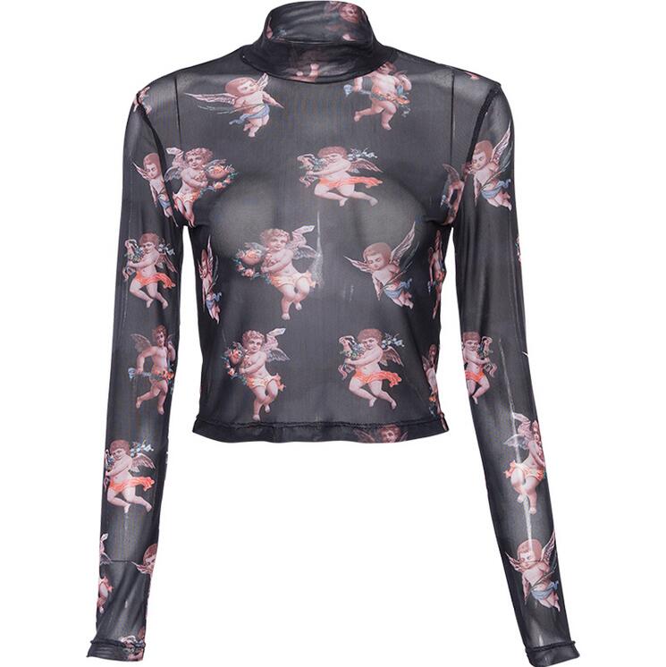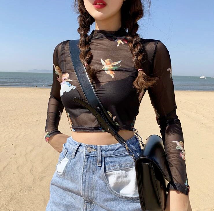 ♡Color: black, blue; ♡Style: mesh; ♡Size: Length: 43cm / 16.9in; Bust: 86cm / 33.9in; Sleeve: 58cm / 22.8in;