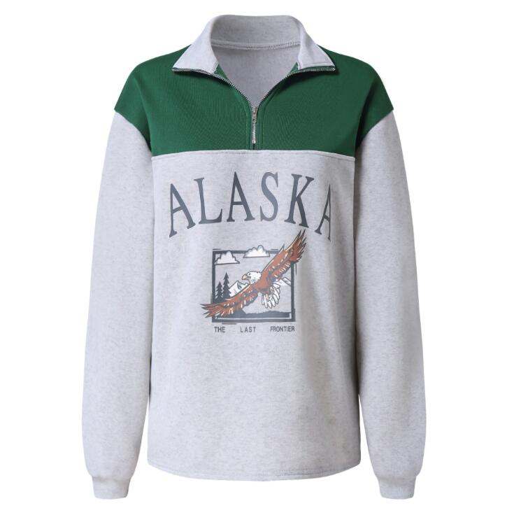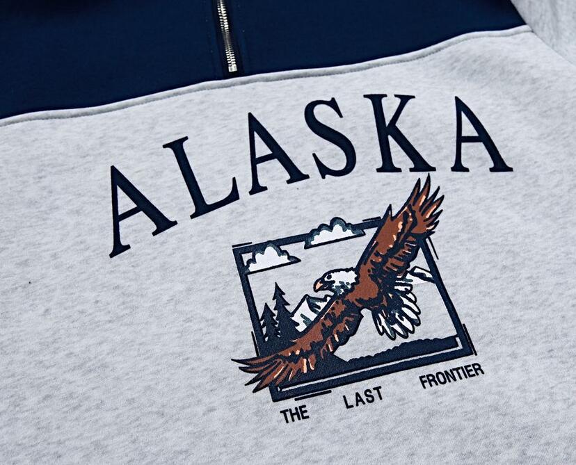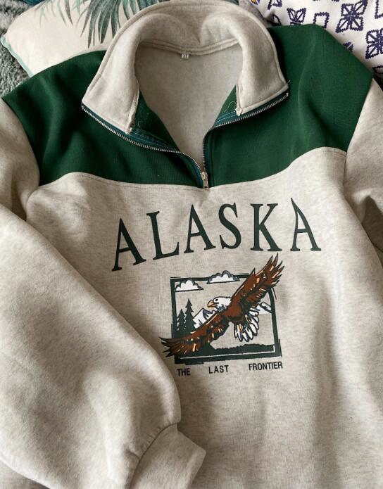 ALASKA Bald Eagle Print Half Zip Sweatshirt