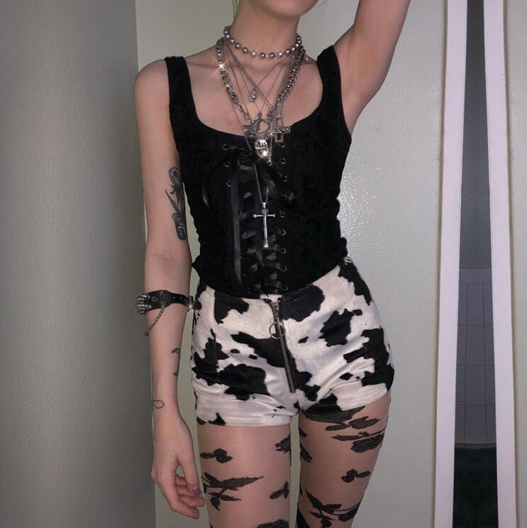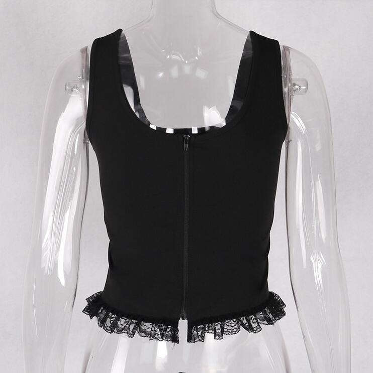 Punk Lace up Strap Cross Black Vest Camisole Top