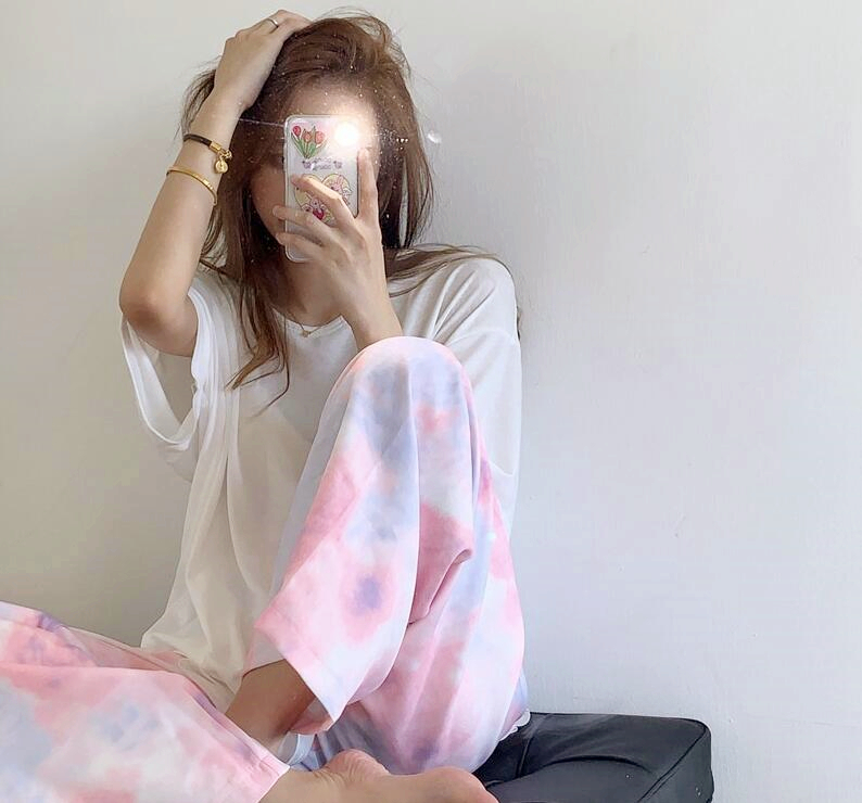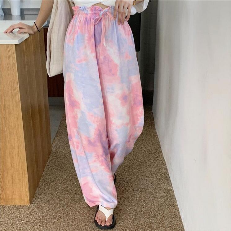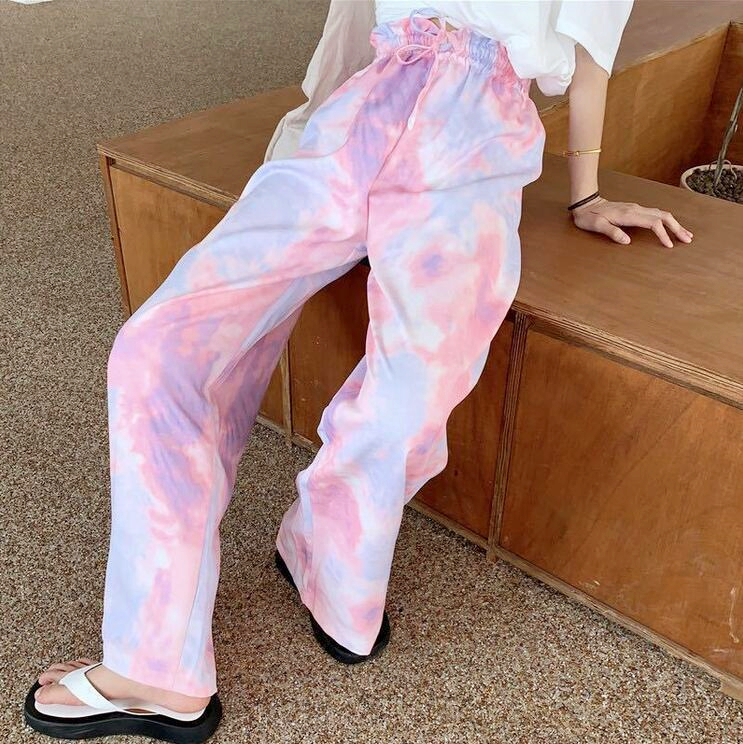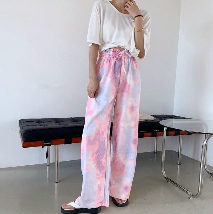 Pastel Color Tie-dyed High Waist Straight Leg Pants