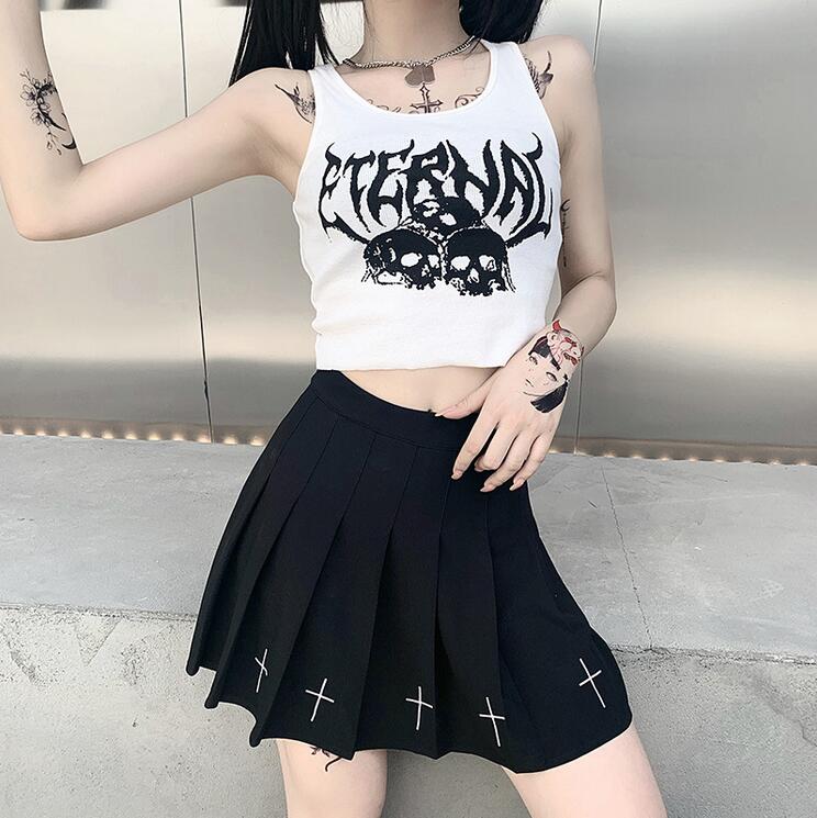 ♡Color: black, white; ♡Style: print; ♡Size: ┃Size S: Length: 41cm; Bust: 76-91cm; Waist: 64-79cm;