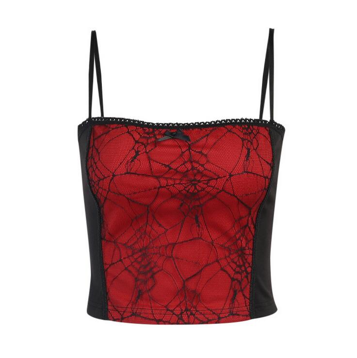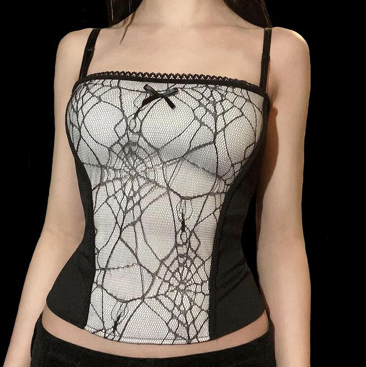 Spider Web Mesh Bow Lace Patchwork Vest Cami Top