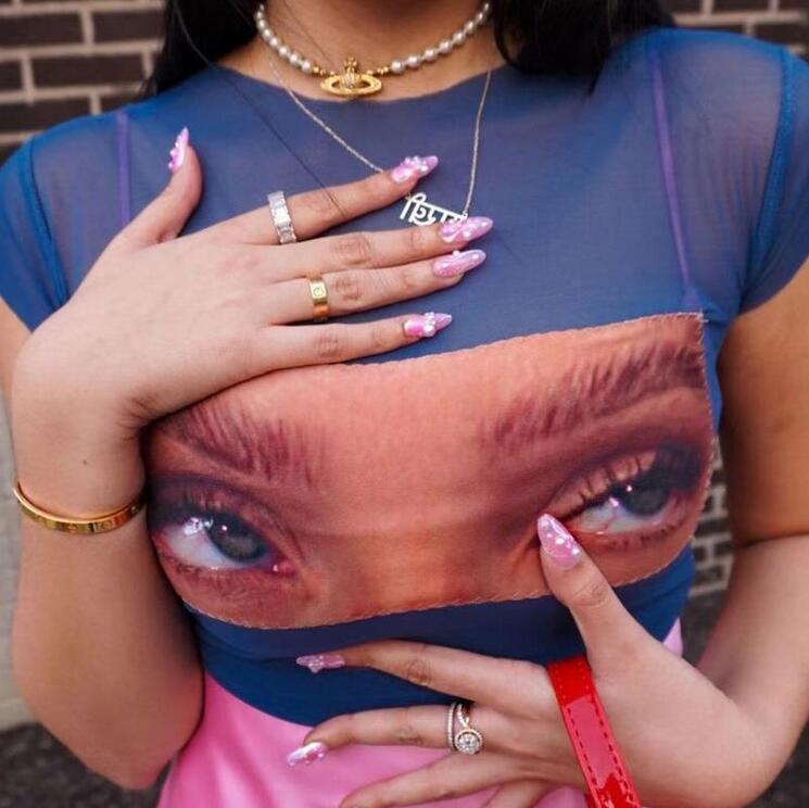♡Color: blue; ♡Style: print; ♡Size: ┃Size S: Length: 49cm; Bust: 78cm; Waist: 70cm;