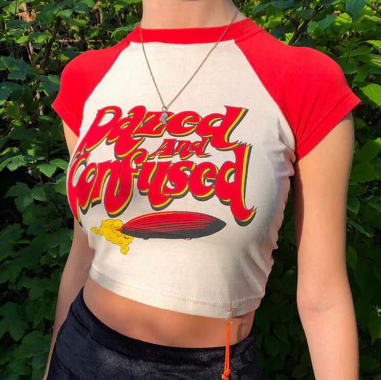 ♡Color: red; ♡Style: print; ♡Size: ┃Size S: Length: 37cm; Bust: 74-88cm; Sleeve: 16.5cm;